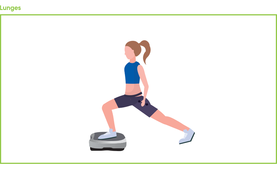 Sådan gør du: Sæt én fod på vibrationspladen. Sænk det bagerste knæ ned mod gulvet, så det næsten kommer ned at røre. Husk at rette ryggen. Hold denne position i 30 sekunder og gentag øvelsen på det andet ben.