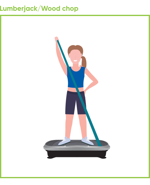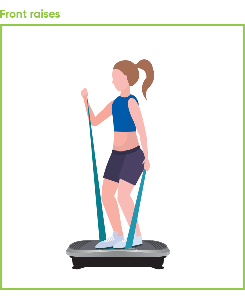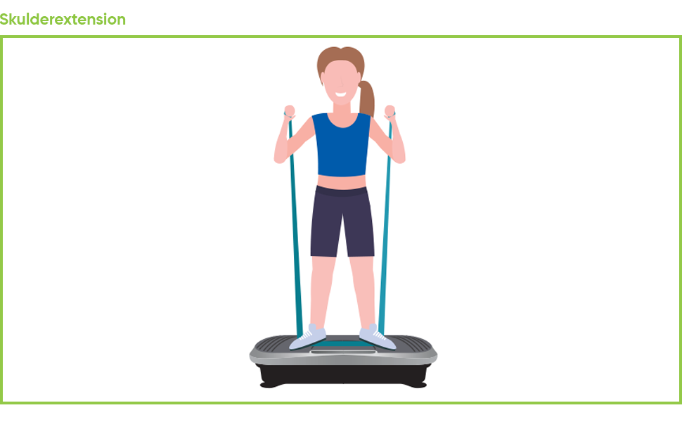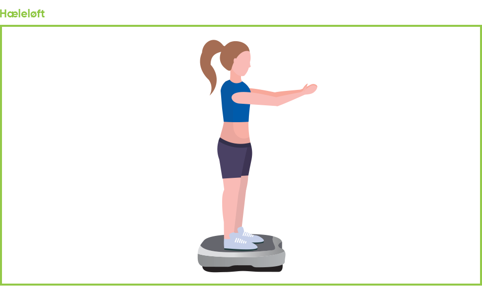Sådan gør du: Stå på vibrationstpladen med et håndtag i hver hånd og udstrakte arme. Løft herefter skiftevis dine arme op til mindst øjenhøjde. Sørg for at holde albuer og håndled udstrakte.