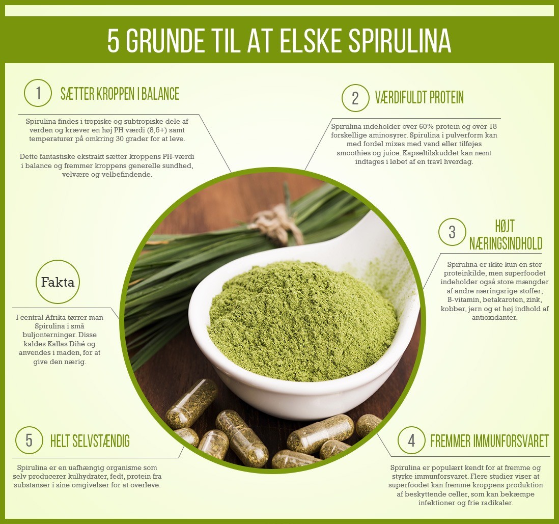 Forestil dig en plante, der kan pleje din krop med at give dig det meste af dit nødvendige protein, du har brug for at leve, der kan hjælpe med at forhindre irriterende snøften og nysen af allergi, styrke dit immunforsvar, hjælpe dig med at kontrollere højt blodtryk og kolesterol og hjælpe med at beskytte dig mod kræft. Spirulina pulver har mange fordele. Dette superfood er en velkendt type alger i en farveblanding mellem grøn og blå, der kan findes i verdens oceaner og søer ved Afrika, Asien og Sydamerika.