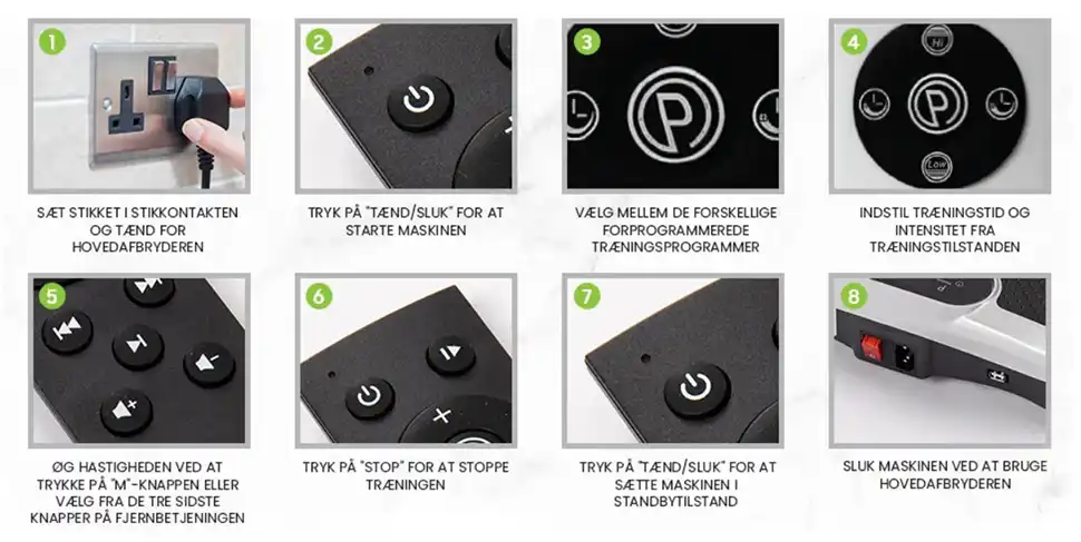 Variér din stilling på vibrationspladen for at aktivere forskellige muskelgrupper og undgå overbelastning.